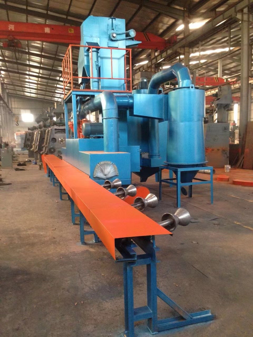 鋼管拋丸機(jī)是一種貫穿式自動(dòng)拋丸清理設(shè)備。 拋丸后,工件表面的氧化皮、漆皮等雜質(zhì)被去除,使工件的金屬顏色暴露出來(lái)。 同時(shí),通過(guò)噴丸可以消除工件的內(nèi)應(yīng)力,提高工件的疲勞強(qiáng)度。 此外,通過(guò)噴丸處理去除工件表面雜質(zhì),創(chuàng)造有利于涂層的粗糙度,增強(qiáng)噴涂時(shí)表面涂層的附著力,延長(zhǎng)噴涂壽命,提高整體表面和內(nèi)部質(zhì)量。